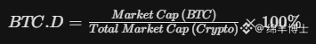 简单来说,比特币主导率就是比特币市值占整个加密货币总市值的比例。我们可以用一个简单的数学公式来表示:
