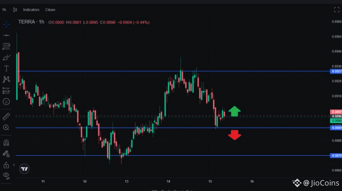 On the hourly chart, LUNA shows sideways movement after a recent pullback.