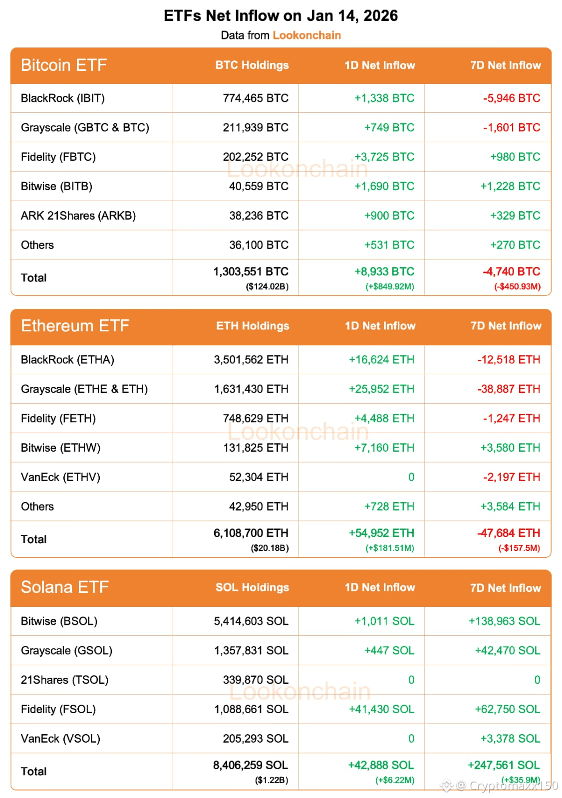 التدفقات المتزامنة على BTC وETH وSOL تؤكد أن المؤسسات تبني محافظ متنوعة، لا رهانات أحادية.