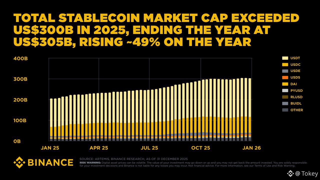 🟥تجاوزت القيمة السوقية للعملات المستقرة 300 مليار دولار بنمو سنوي 49٪