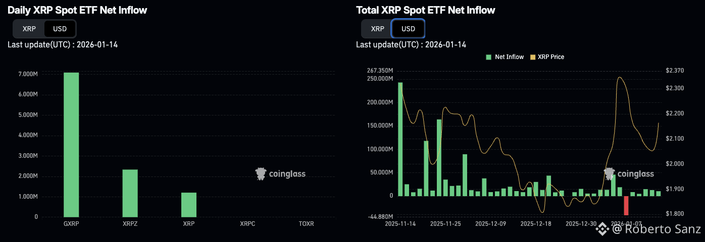 Los ETFs spot de XRP siguen recibiendo entradas sólidas.