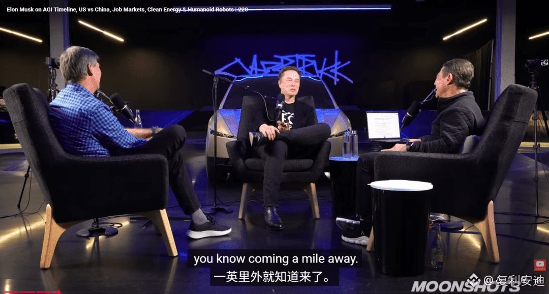 2026年1月,在德州奥斯汀特斯拉超级工厂的车间里,埃隆·马斯克与《Moonshots》主持人展开了一场近3小时的深度对谈。车间内Cybertruck的金属车身泛着冷光,远处Optimus机器人的测试机械臂不时挥动,而马斯克抛出的观点比现场的科技感更具冲击力——从“2026年实现通用人工智能(AGI)”到“3年后机器人医生碾压人类专家”,从“中国将主导AI算力”到“未来货币是电力”,每一个预测都像一颗重磅炸弹,撕开了“未来遥远”的固有认知,也为人类文明的下一阶段画出了清晰却残酷的倒计时。