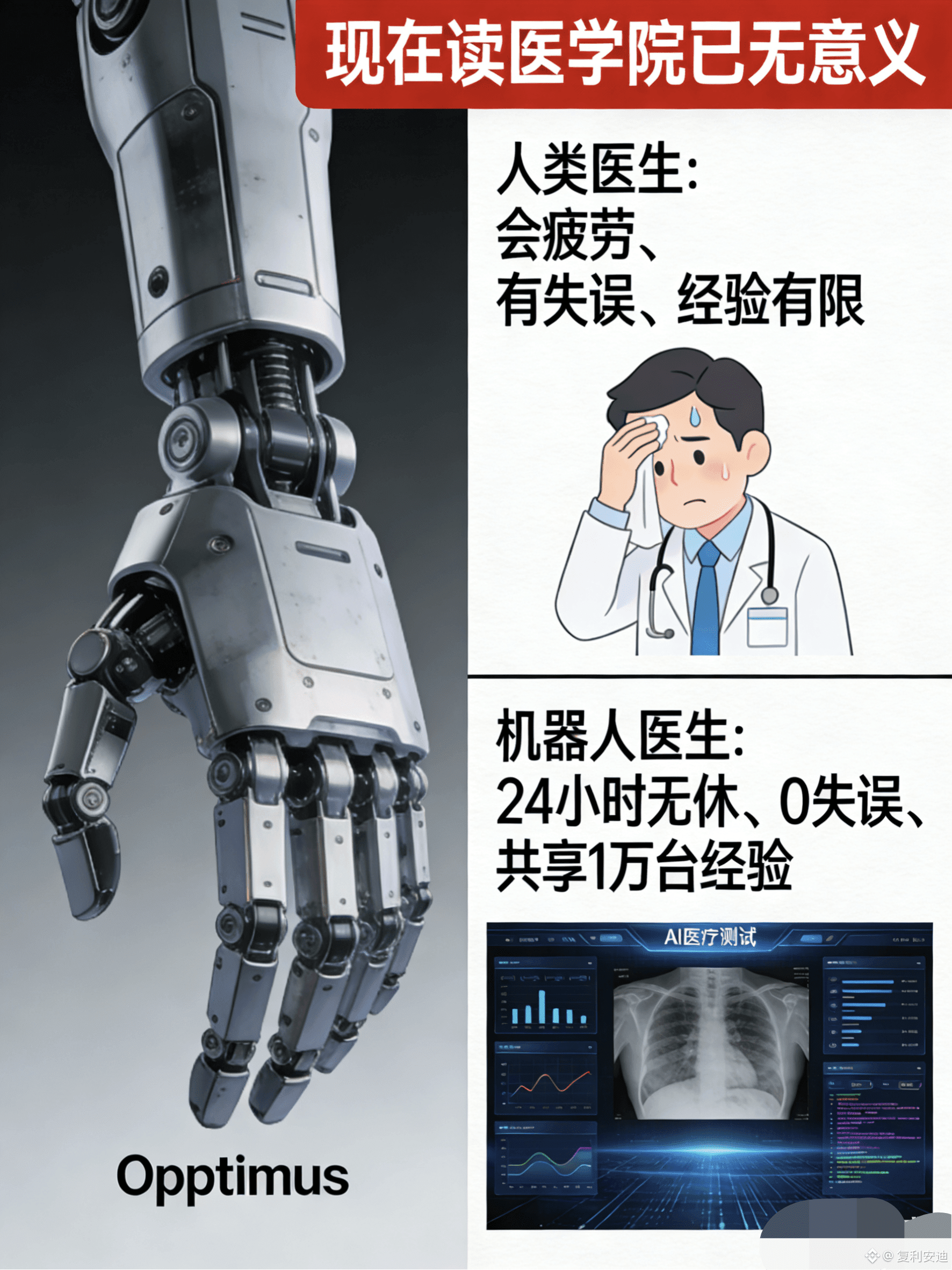 二、医疗革命:3年后Optimus机器人做手术,读医学院已无意义