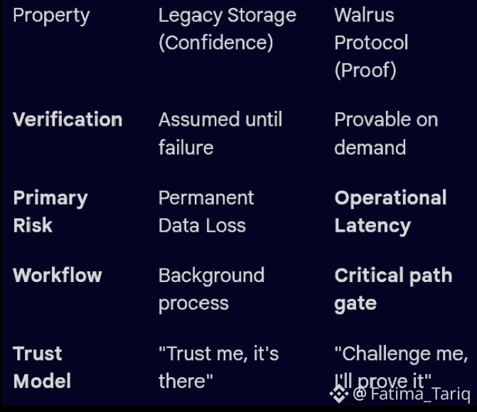 In the Walrus Protocol, the greatest risk isn’t losing your data—it’s the inability to prove you have it at the exact moment the world demands it. We are moving out of the era of "Belief" and into the era of "Challengeable Availability."