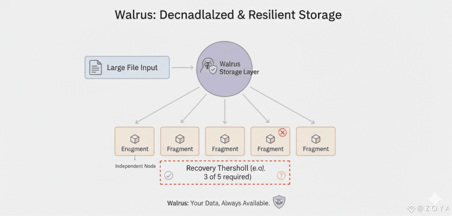 The design choice that matters most isn’t flashy. It’s fragmentation. Data sliced, scattered, made stubborn. Pieces spread wide enough that losing a few doesn’t matter. That changes the psychology of failure. Instead of praying nothing goes wrong, the system assumes something will. Nodes disappear. Connections drop. Reality interferes. Walrus plans for that mess instead of denying it.