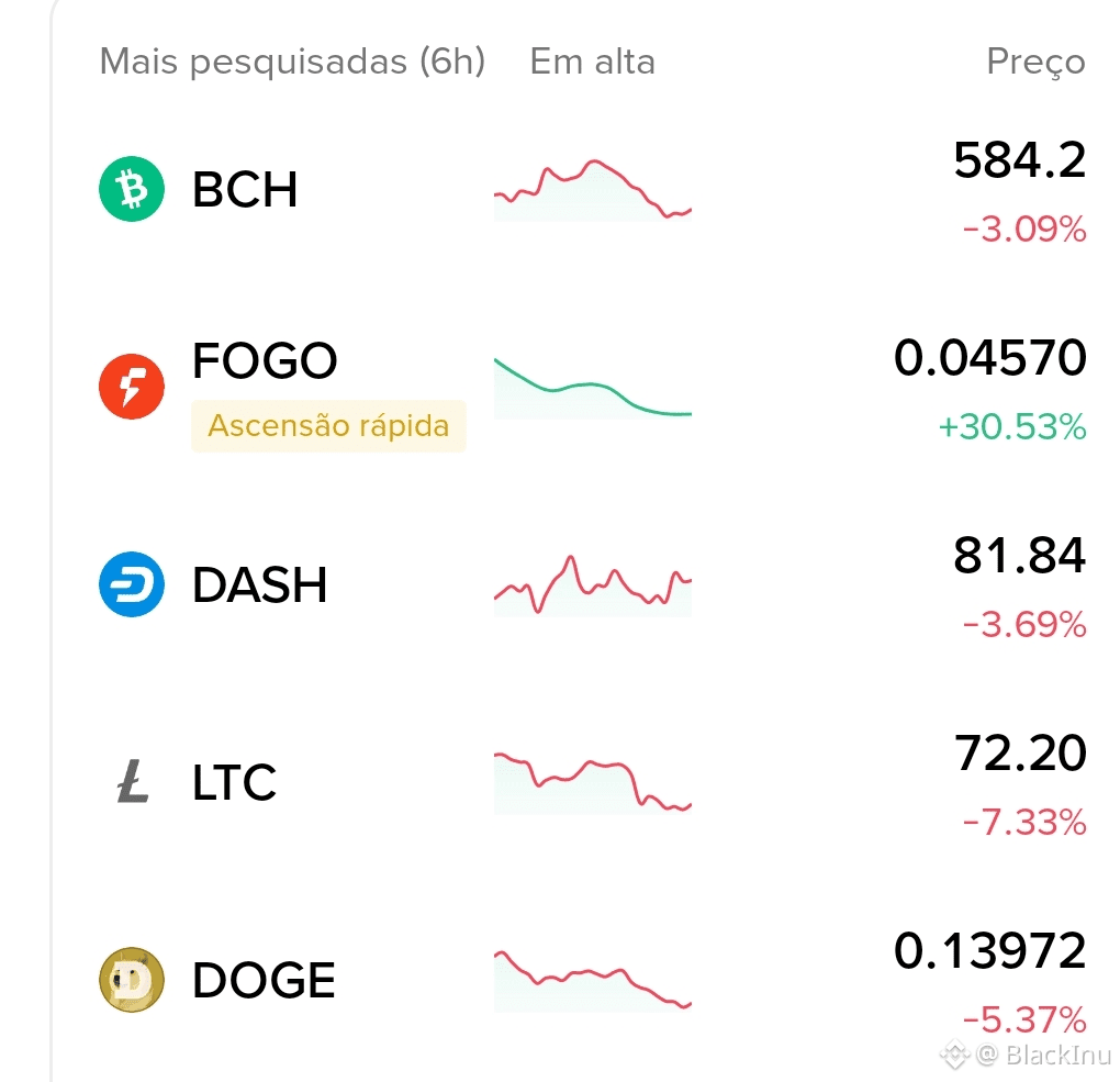 Quando apenas 1 ativo em 5 está verde entre os mais pesquisados, é puro FOMO concentrado. O capital está fugindo das grandes (LTC, DOGE) e apostando numa narrativa específica. Isso é: