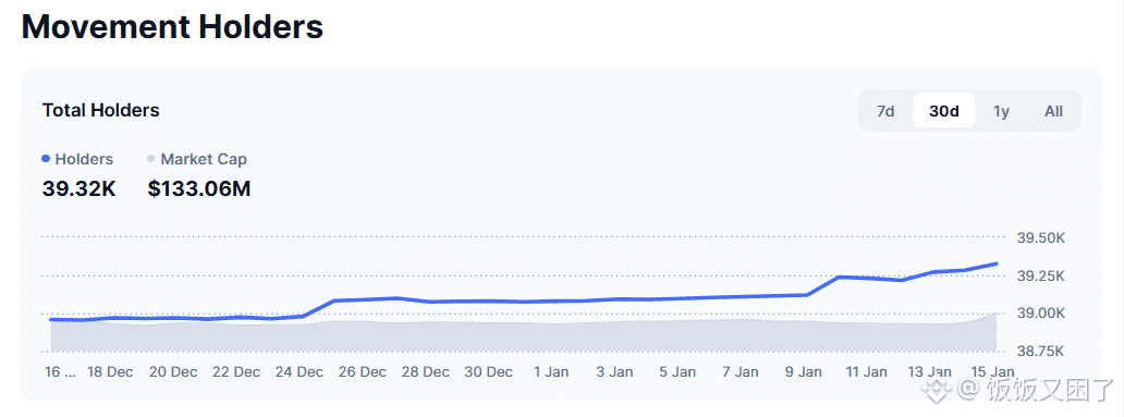 从网络数据来看,MOVE 的市场活动也印证了其上涨趋势。自 1 月 9 日以来,持有者数量持续增加,目前已达 39.32 万人。过去七天的交易量保持稳定,平均每日超过 55 万笔,本周总交易量约为 420 万笔。