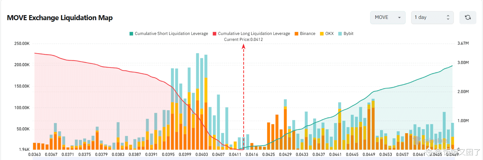 尽管如此,价格上方仍存在卖方压力。阳线影线显示,MOVE 暂时难以突破 0.045 美元,这表明部分卖家在积极抵抗,短期内阻碍价格进一步冲高至 0.06 美元。