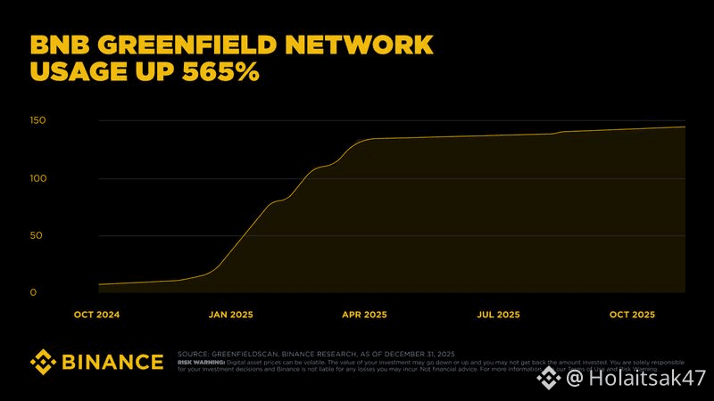 BNB Chain’s greenfield network usage jumped over 565% in 2025. Not from hype cycles — from real users showing up and staying. Scale isn’t about announcements anymore.