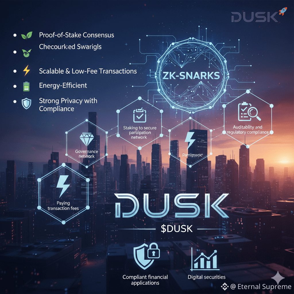 Dusk is designed with privacy at its core, keeping transactions and smart contracts confidential while still being verifiable on-chain.