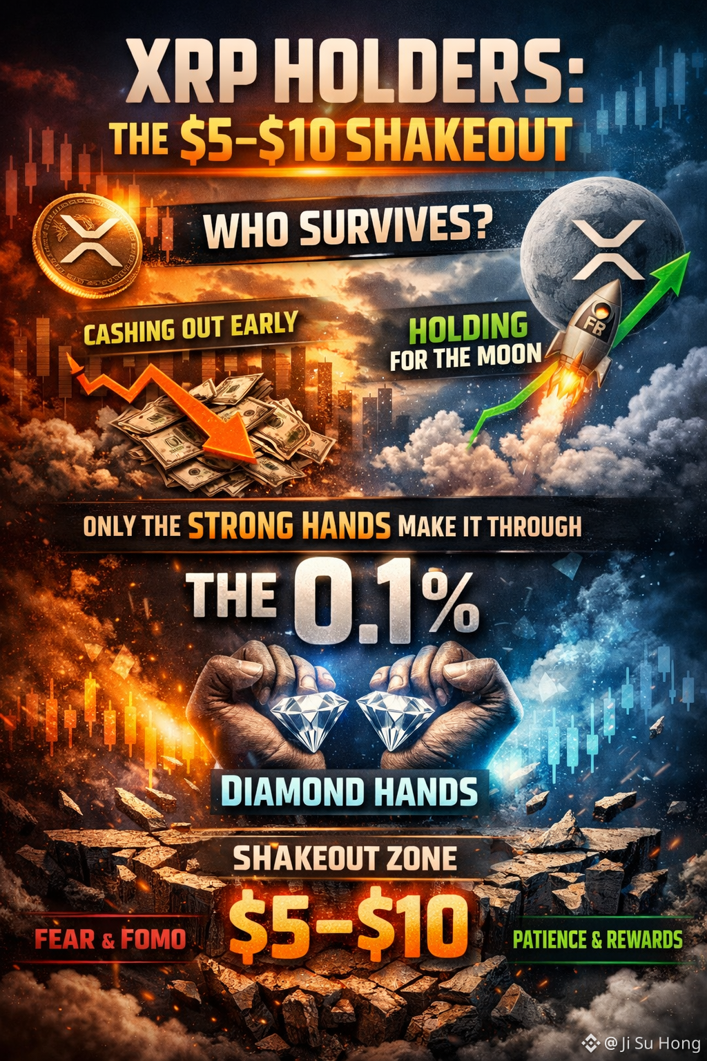 A well-known XRP voice, JackTheRippler, recently pointed out something many don’t want to hear: most holders won’t make it past $5–$10. That range is where emotions take over. Fear, profit-taking, and doubt kick in hard. Only a very small group — maybe 0.1% — will have the patience to hold beyond it.