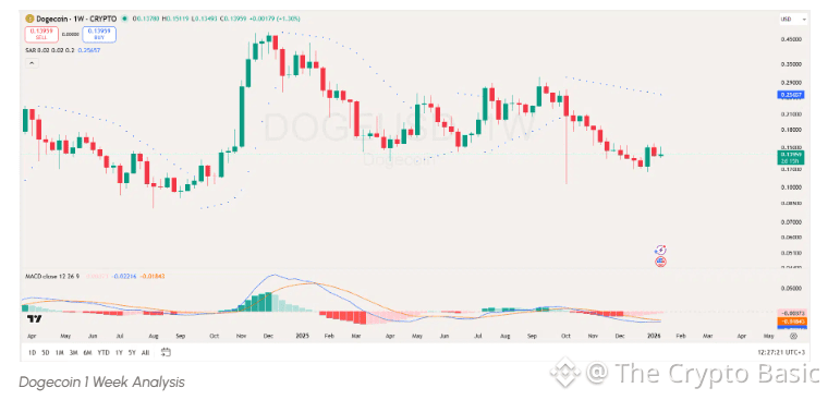 The 1-week chart analysis for Dogecoin shows that while the price is currently at $0.1396, it faces significant resistance as the Parabolic SAR sits above the price action at $0.257. This placement suggests that DOGE’s upward movement faces limitations at the moment, and for further gains, the price will need to reach and break through the SAR level.