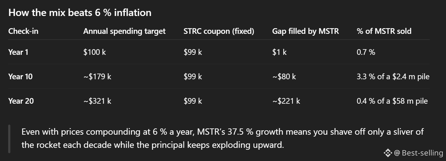 A modest 10% slice in MSTR compounds fast enough to outrun 6 % inflation many times over, giving you a deep well to tap for rising expenses.
