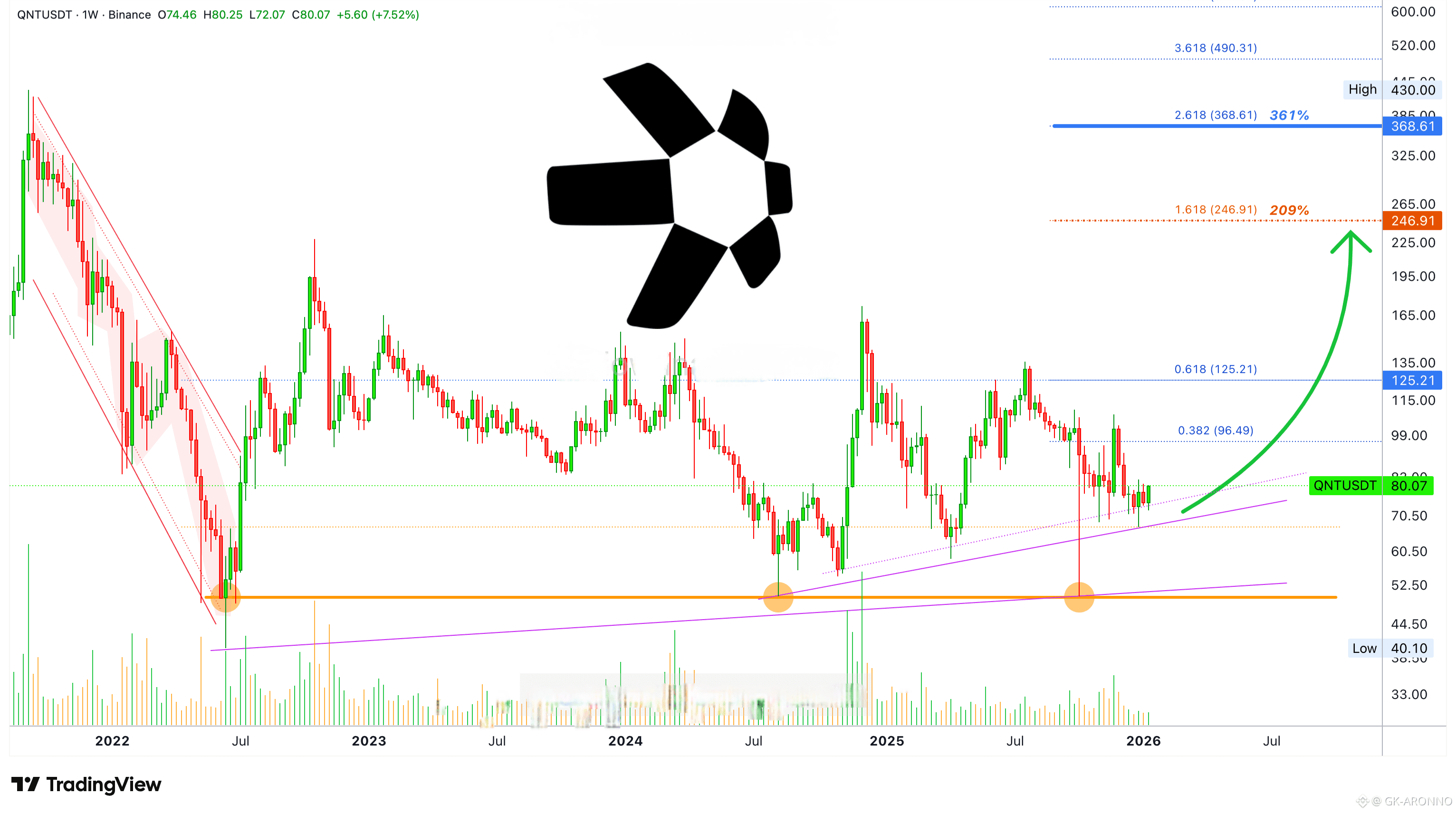This support zone, the orange line on the chart, has been shown to produce massive growth. Do we agree Quant is going up?