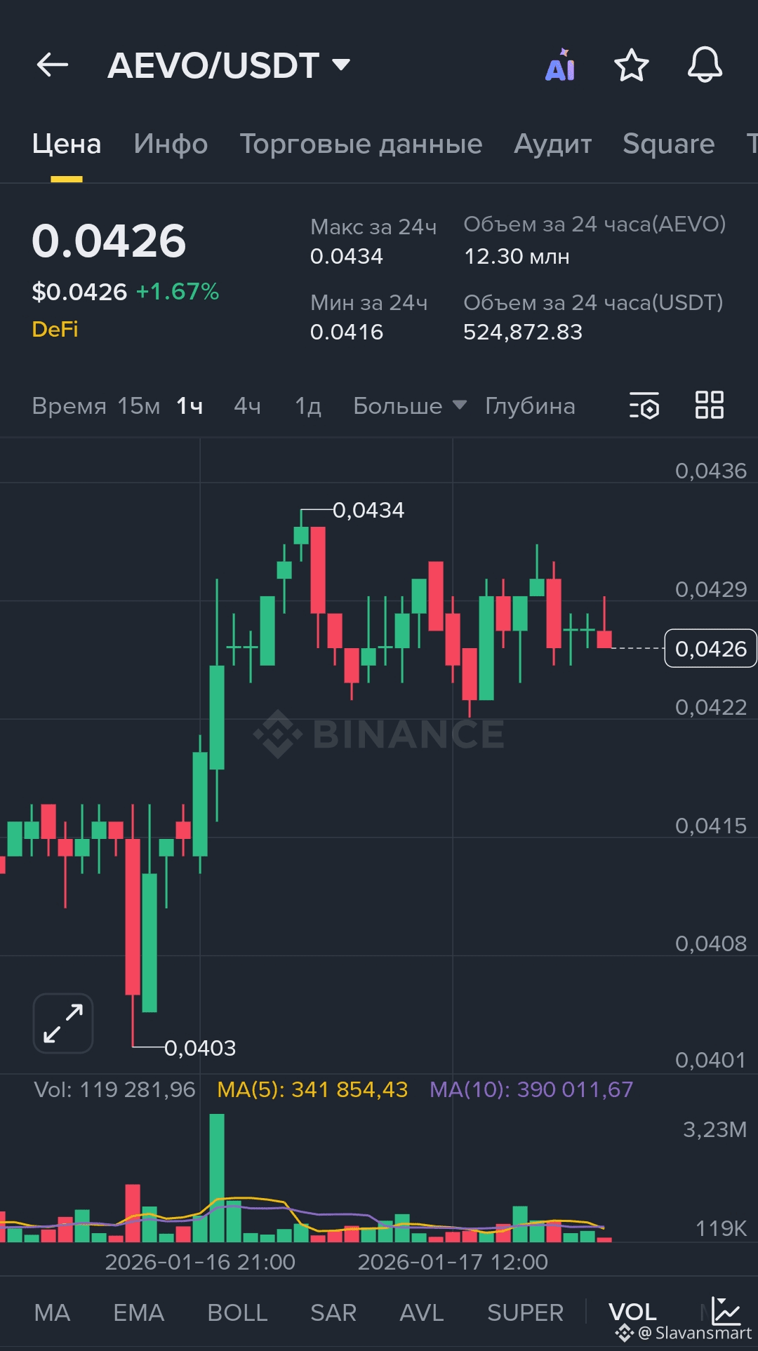 ≈ 0.0426-0.0440💲на споте по AEVO/USDT (реальные рыночные данные)
