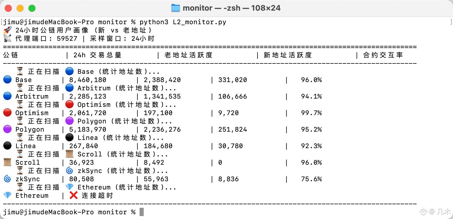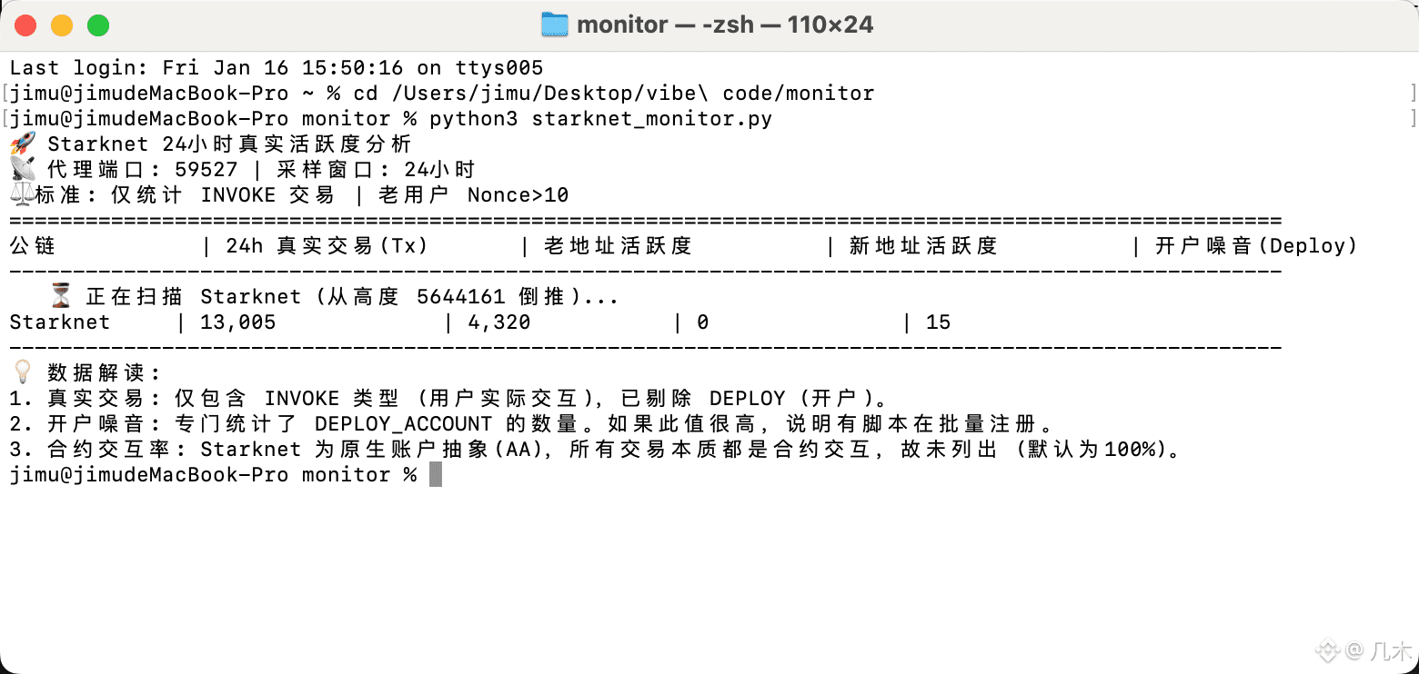 第二,针对所有 EVM 系公链(包括 Arb, Base, Scroll, zkSync, Starknet 等),统一设定了 ‘Nonce > 10’ 的门槛。 这意味着,那些刚刚创建、交互次数寥寥无几的‘日抛型’账号,全都被排除在‘核心老用户’的统计之外。
