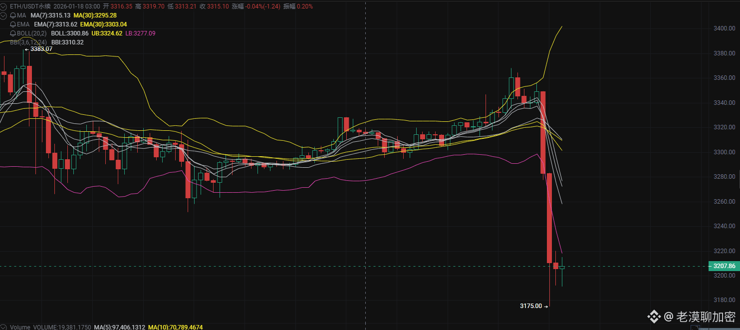 急跌放量,价格从 3350+ 一路砸到 3200 下方