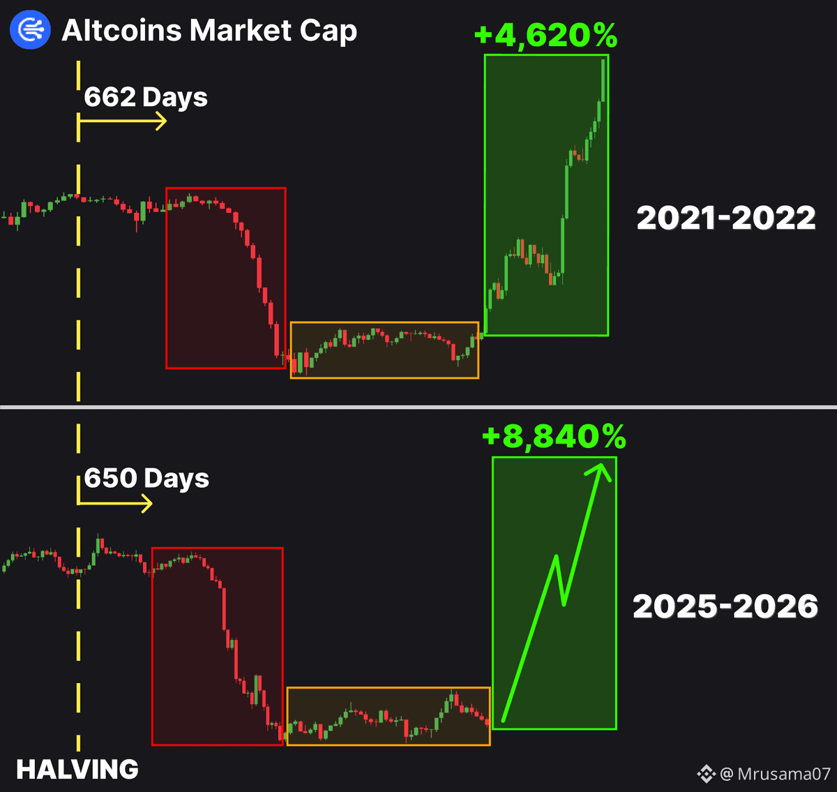 According to market structure and historical patterns, a setup very similar to early 2021 is forming. Back then, Bitcoin stabilized after a strong move, and what followed was an explosive altcoin rally of over 4,600% across the market.