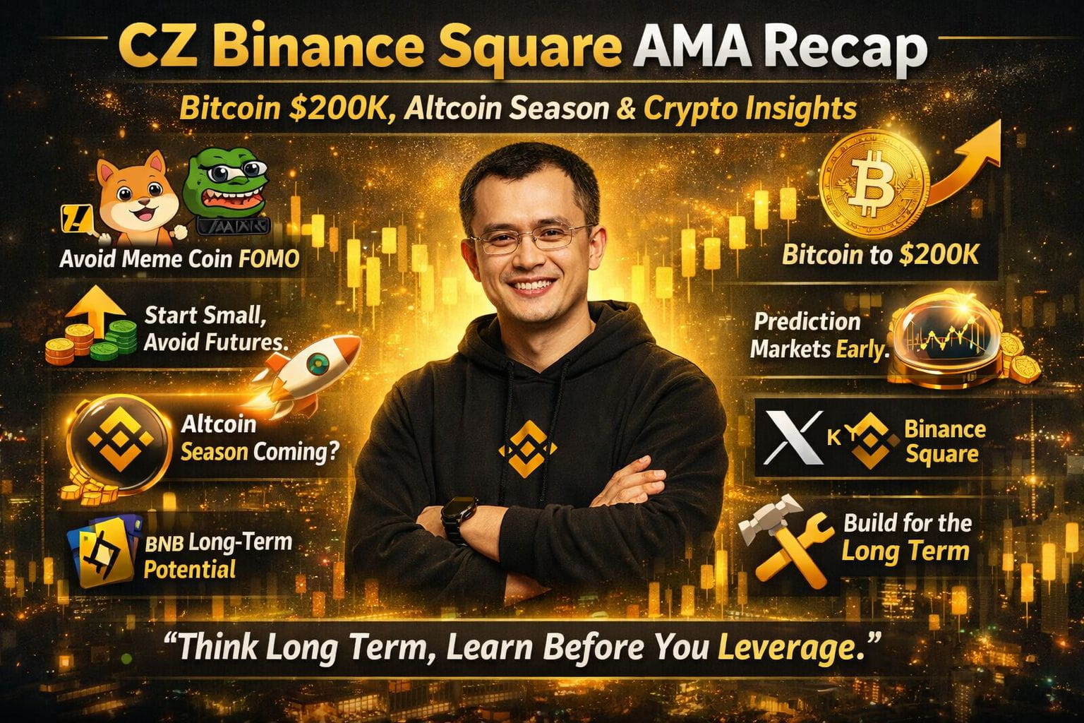 In a recent AMA livestream on Binance Square, Binance co-founder and former CEO Changpeng Zhao (CZ) shared his views on some of the most talked-about topics in crypto — including Bitcoin’s long-term price outlook, altcoin season, meme coins, trading risks, and the future of social crypto platforms.