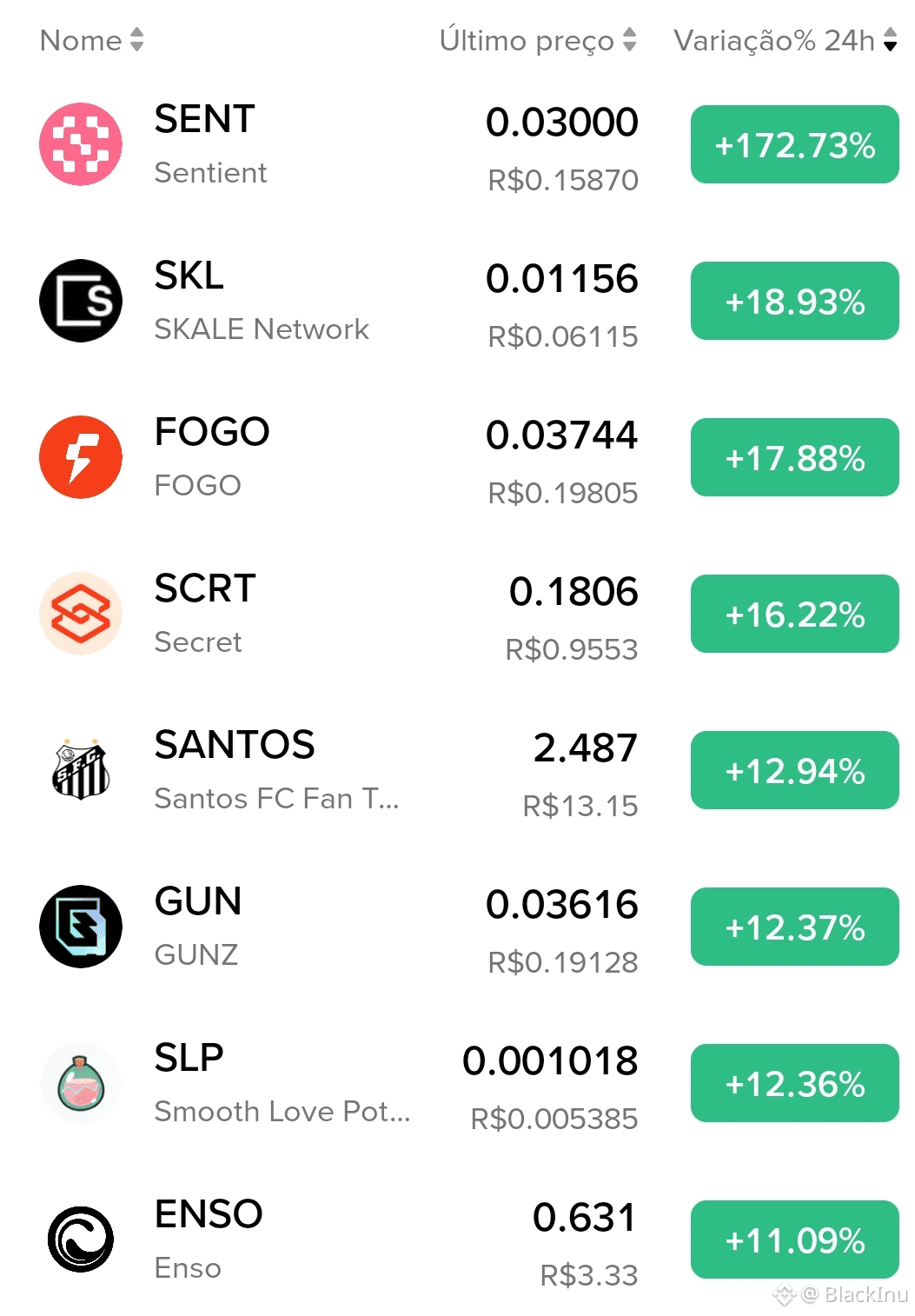 Conclusão: Esta é uma lista de maiores ganhadores, refletindo um momento de alta especulação no mercado. Enquanto projetos de infraestrutura legítima (SKL, SCRT) aparecem, os movimentos extremos (como SENT e FOGO) dominam. Para um investidor, esta lista serve mais como um termômetro de sentimento de risco extremo do que como uma carteira balanceada. A continuidade desses ganhos raramente é sustentável no curto prazo, indicando a importância de gestão de risco rigorosa.