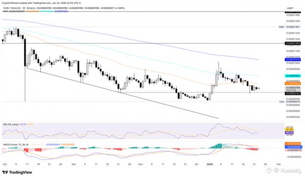 شيبا إينو تستعيد أكثر من 1% في وقت كتابة التقرير يوم الجمعة، تتماسك تحت المتوسط المتحرك الأسي لمدة 50 يومًا عند 0.00000829 دولار. تحوم SHIB فوق مستوى الدعم 0.00000755 دولار المحدد بأدنى مستوى في 21 نوفمبر.