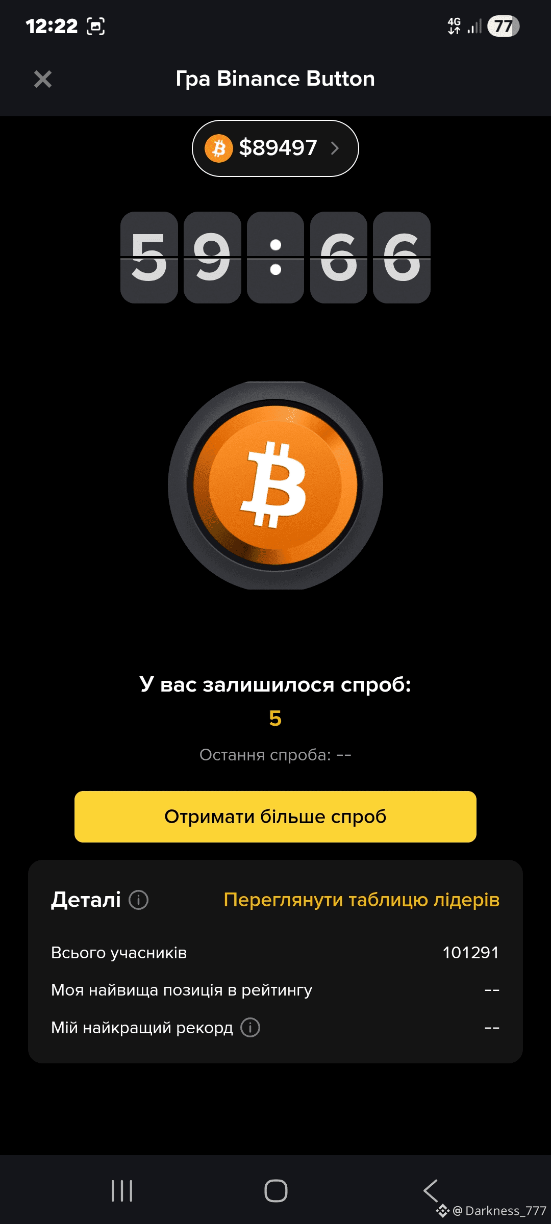 Не тисніть зараз! Коли на лічильнику 59:21 — це лотерея з нульовими шансами. Мої 5 спроб лежать недоторканими. Чекаю, поки хайп вщухне, і таймер почне падати хоча б до 10-20 секунд. Справжній мисливець б’є в тиші.