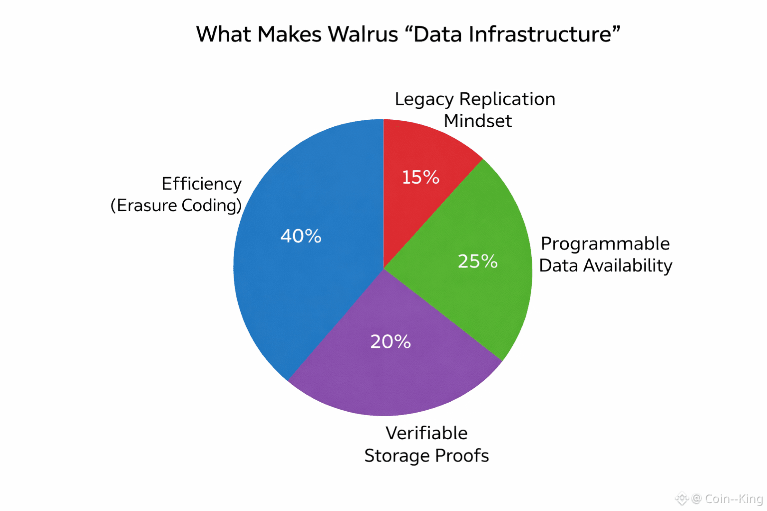 If you’ve watched enough infrastructure narratives play out in crypto, you learn to separate labels from reality. “Storage” has often been sold as a feature, something apps plug into when they need a place to dump files. Walrus is different because it treats data as part of the system itself, not an external dependency. That’s why the idea that Walrus is not just storage, but data infrastructure, has started to stick with traders and builders through 2024 and into 2025.