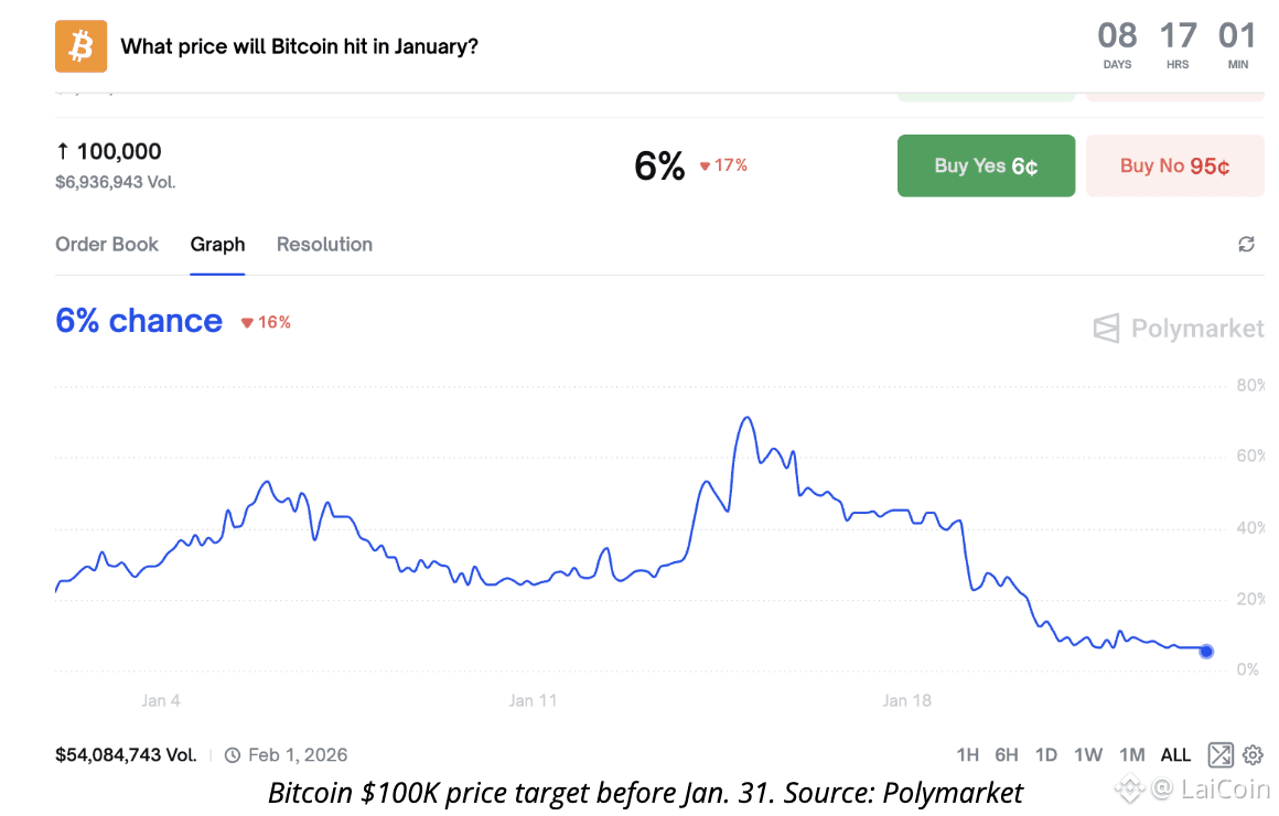 Less than 10% probability $BTC reaches $100K before February 2026