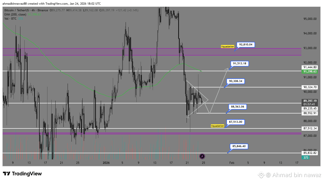 After that, it can target the upper liquidation zones around 90,300 and 91,500.