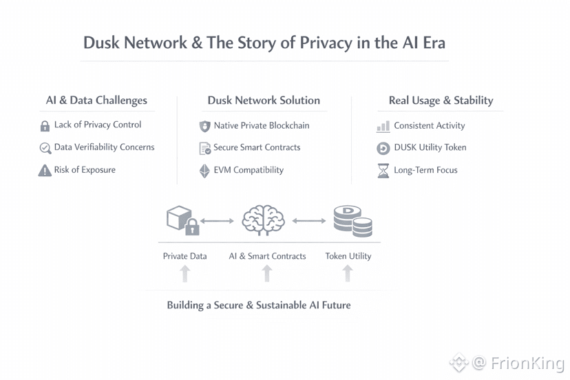 • I have been in the market long enough to see one pattern repeat itself. Every new technology cycle comes with a big promise, and AI is no exception. But the longer you stay, the clearer it becomes that the real issue is not how powerful the technology is, but what kind of infrastructure stands behind it. AI can be intelligent, but if the underlying data lacks control, privacy, and verifiability, then the entire system is nothing more than a sophisticated gamble. That is why I look at Dusk Network not with short term excitement, but through the lens of someone who has lived through multiple cycles.