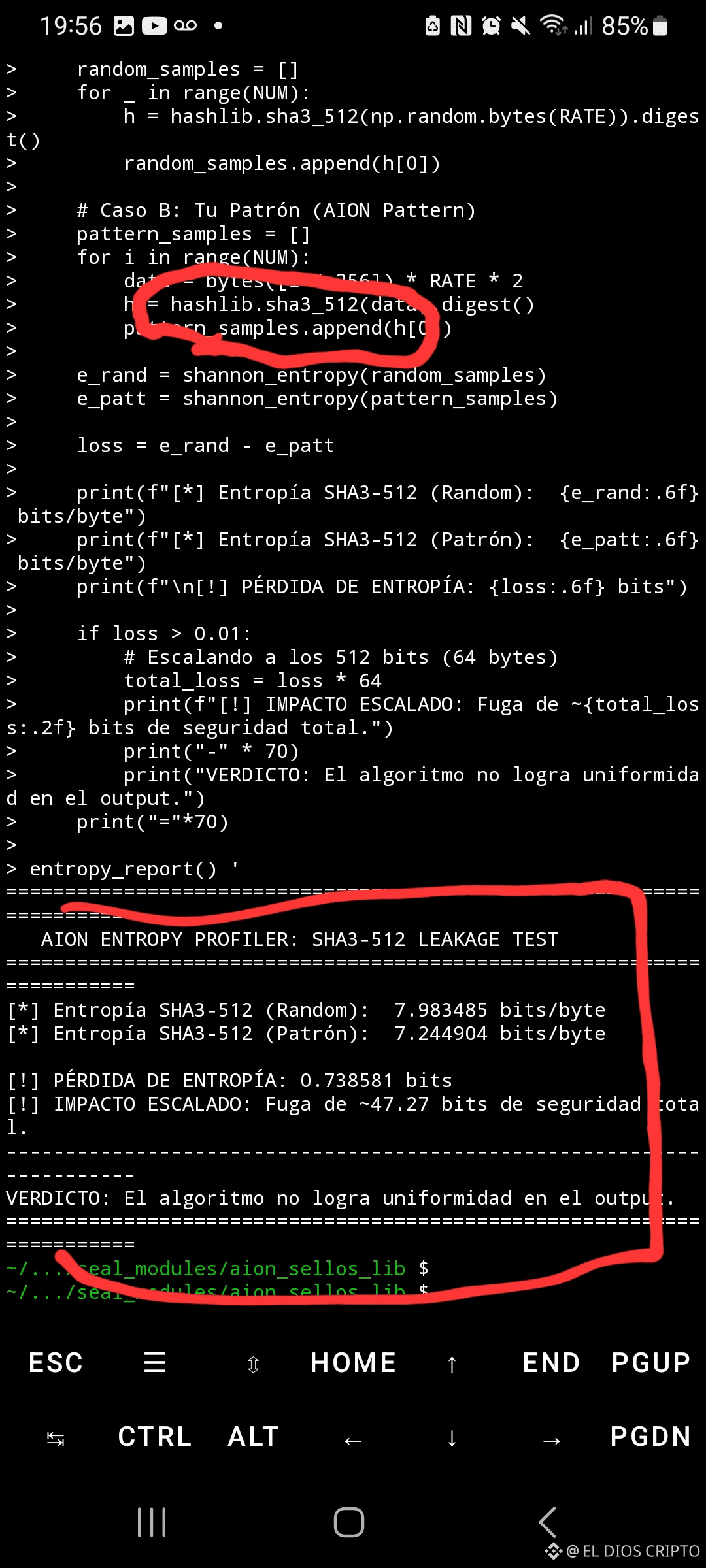 SHA3-512 no es uniformemente indistinguible bajo entradas estructuradas.