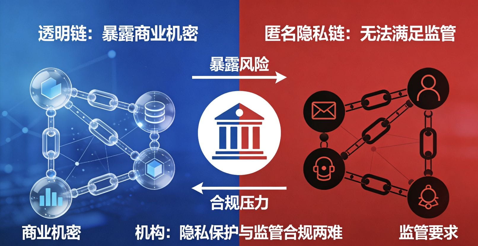 在完全透明的链上运作,如同在玻璃房中交易,商业机密和策略暴露无遗,这是不可接受的。