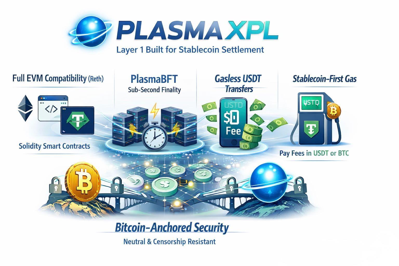Sending stablecoins feels like sending money, not executing blockchain operations. There is no confusion about gas. No need to manage extra balances. No onboarding friction. If crypto is ever to reach billions of users, this kind of abstraction is essential. Anchoring Security to Bitcoin One of the most distinctive elements of PlasmaXPL is its Bitcoin anchoring model. Rather than positioning itself as a competitor to Bitcoin, PlasmaXPL treats Bitcoin as the ultimate settlement layer. Periodically, the state of the Plasma chain is committed to the Bitcoin blockchain.