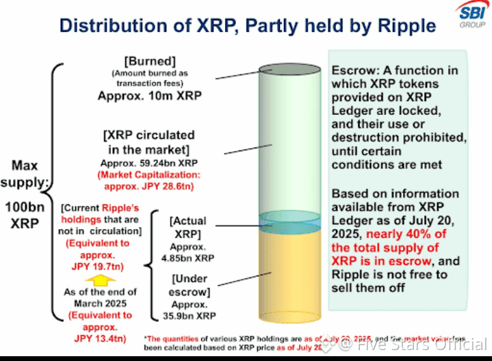Originally, 100 billion $XRP XRP were created, with Ripple holding the majority to support development and adoption. Over time, Ripple introduced escrow mechanisms, predictable release schedules, and public reporting, improving transparency and market confidence. As of 2025, Ripple and its executives hold roughly 41.5 billion XRP, a significant reduction from initial levels.