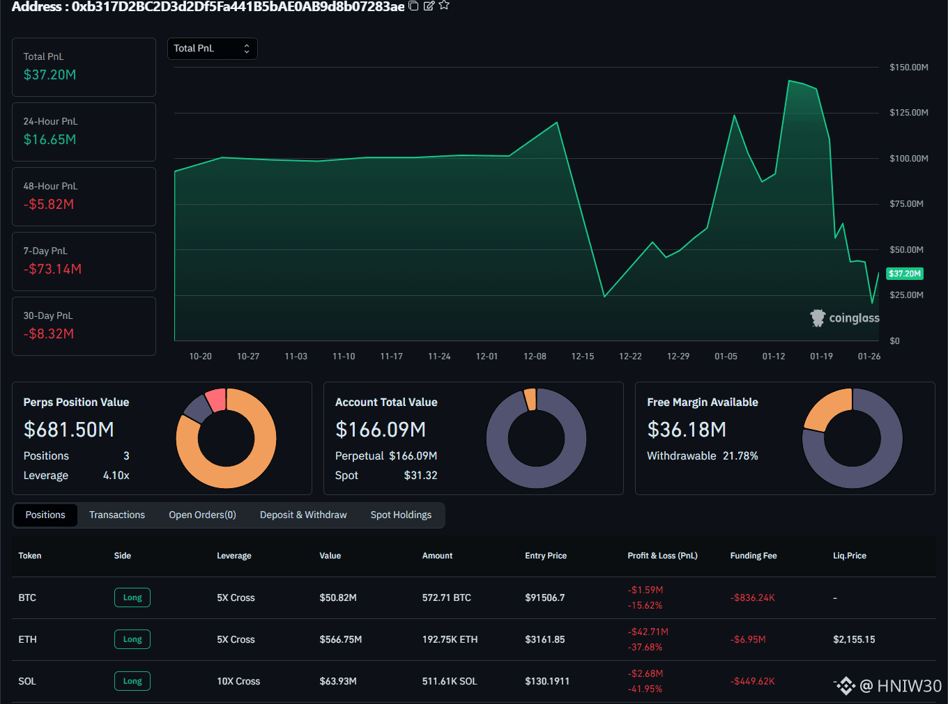 Theo dõi hoạt động của mấy con cá voi lớn trên Hyperliquid mấy ngày nay, mình thấy tình hình đang dần thay đổi so với giai đoạn cuối năm ngoái – lúc mà ai cũng nghĩ thị trường sẽ tiếp tục bay cao sau khi BTC chạm đỉnh cũ. Hiện tại (sáng 27/01/2026), giá ETH đang loanh quanh 2.895 - 2.908 USD (theo CoinDesk và Yahoo Finance realtime), BTC thì ở mức 87.800 - 88.000 USD, sideway nhẹ nhưng áp lực bán vẫn còn từ các vị thế long cũ.Con BTC OG Insider Whale (hay còn gọi là "BTC OG" – cái địa chỉ từng ngủ đông 8 năm, nắm hơn 50k BTC rồi dần convert sang ETH) vẫn là tâm điểm. Trước đây khoảng 1-2 tuần, vị thế tổng của nó từng giảm xuống còn khoảng 679-742 triệu USD, lỗ floating nặng (có lúc tới 49 triệu), chủ yếu vì entry ETH cao (~3.147-3.161 USD) trong khi giá dip về dưới 3k. Nhưng từ đầu tháng 1 đến giờ, nó đã điều chỉnh khá khéo: