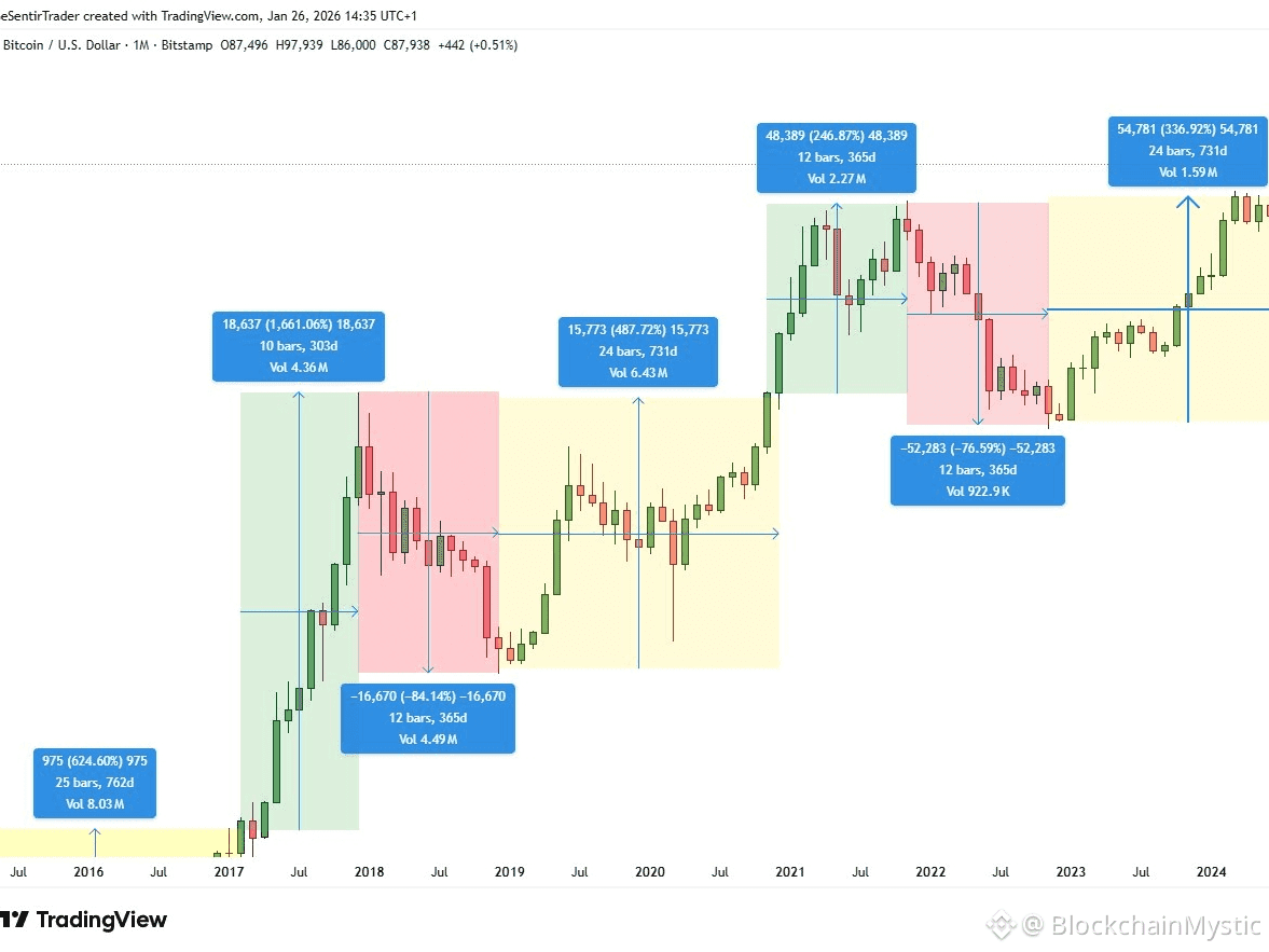 比特币月线图正在重演 自 2013 年以来每个周期都走过的老路。