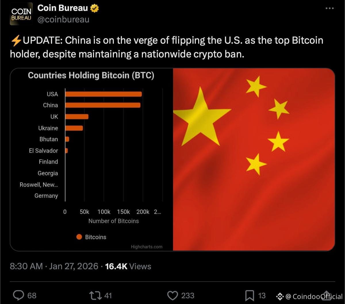While Beijing has aggressively restricted private crypto usage, it has not liquidated all seized Bitcoin holdings, allowing reserves to accumulate quietly. This has placed China among the top government Bitcoin holders globally — a position that appears increasingly close to overtaking the United States.