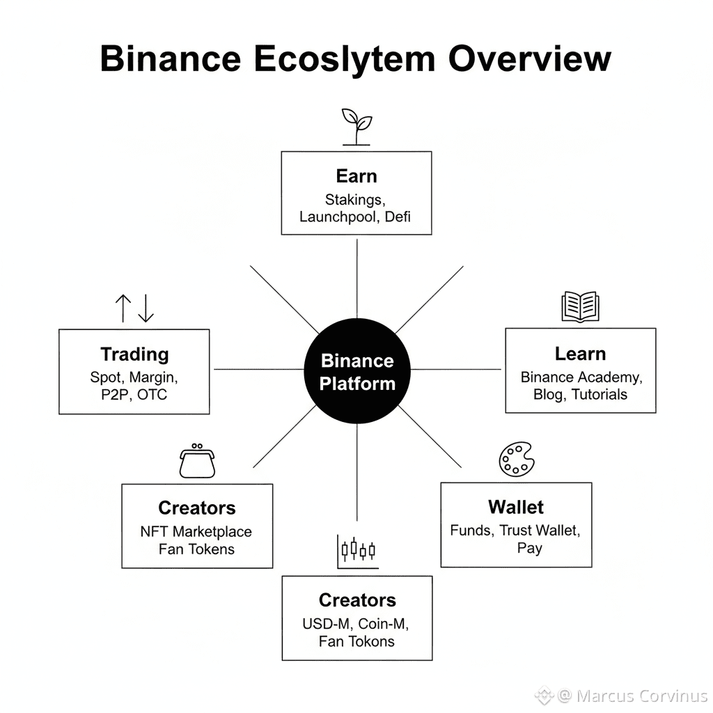 When people first hear the word Binance, they usually think of trading. Buying Bitcoin, selling altcoins, watching charts move. But for millions of users today, Binance is no longer just a trading platform. It has quietly grown into something much bigger — an ecosystem where people trade, learn, earn, create, and even build long-term digital habits.
