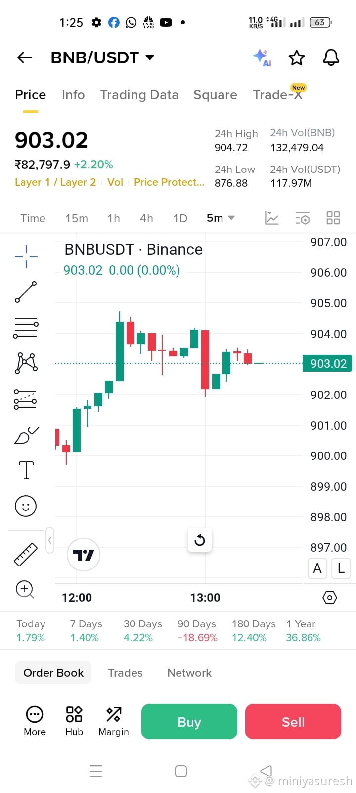 #BNB showed a strong rejection near the 904 level, after which short-term selling pressure became clearly visible. The price failed to sustain at higher levels, which is why a scalp sell trade was preferred.