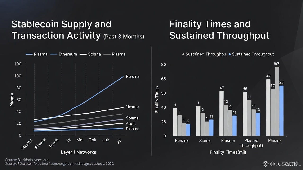 The second compares finality times and sustained throughput across leading networks. Plasma's sub-second confirmations and ability to handle thousands of transactions per second without congestion put it in a strong position for anything that needs to feel like instant money movement—remittances, merchant payouts, payroll on chain, or institutional flows.