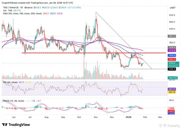 يحقق Bittensor ($TAO ) انتعاشًا ملحوظًا فوق مستوى الدعم 240 دولار يوم الأربعاء، مما يعكس تفاؤلًا متجددًا عبر قطاع رموز الذكاء الاصطناعي (AI) حيث يتنقل المتداولون في السوق قبل قرار الاحتياطي الفيدرالي (Fed) بشأن السياسة النقدية.