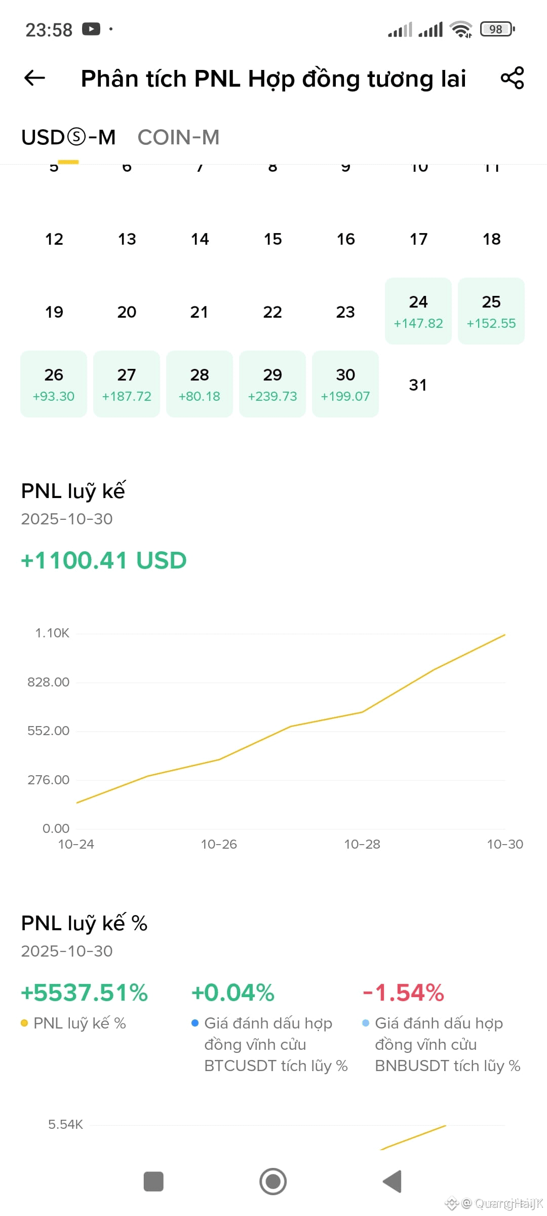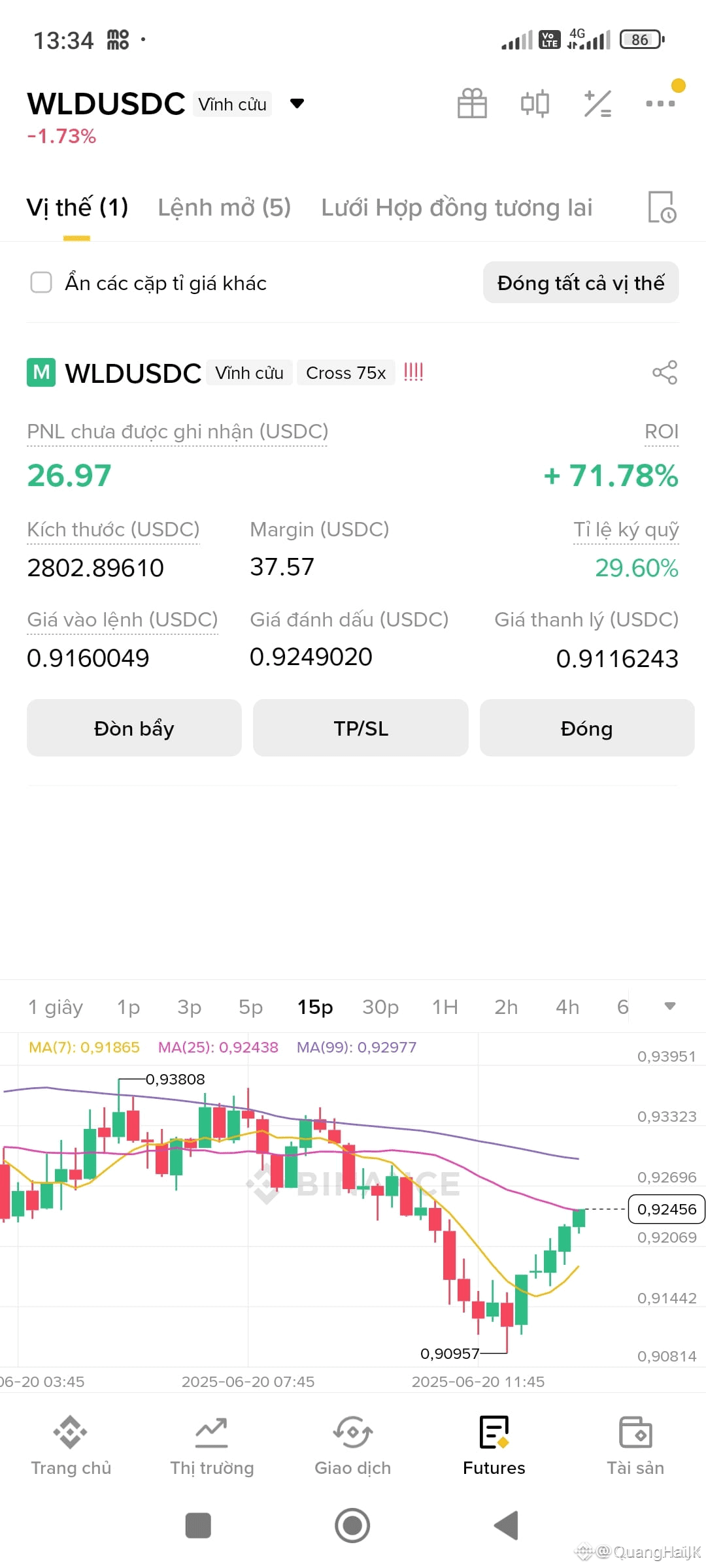 Vào app/web Binance → Futures → Chọn cặp (ví dụ BTCUSDT).