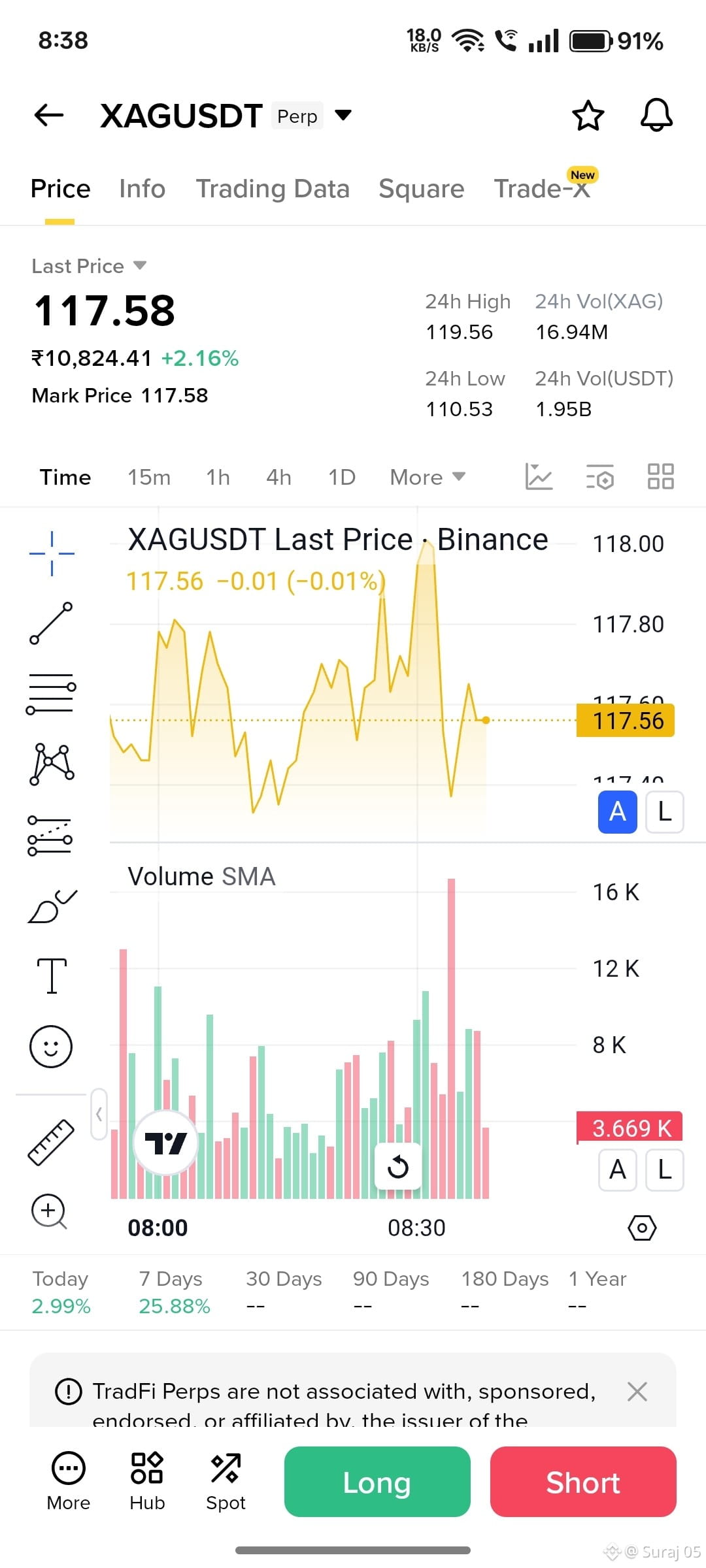 Silver is holding firm at $117.58 (as seen in your second screenshot), maintaining its position near all-time highs.