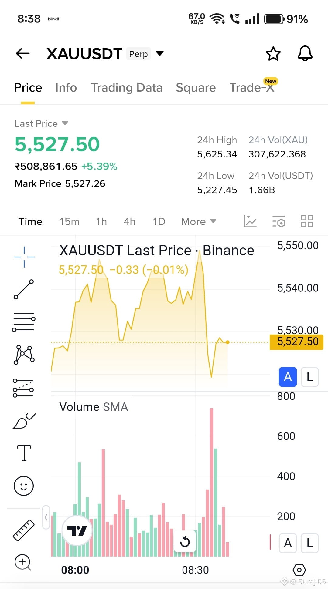 In your screenshot, Gold is trading at $5,527.50, showing a strong +5.39% gain.