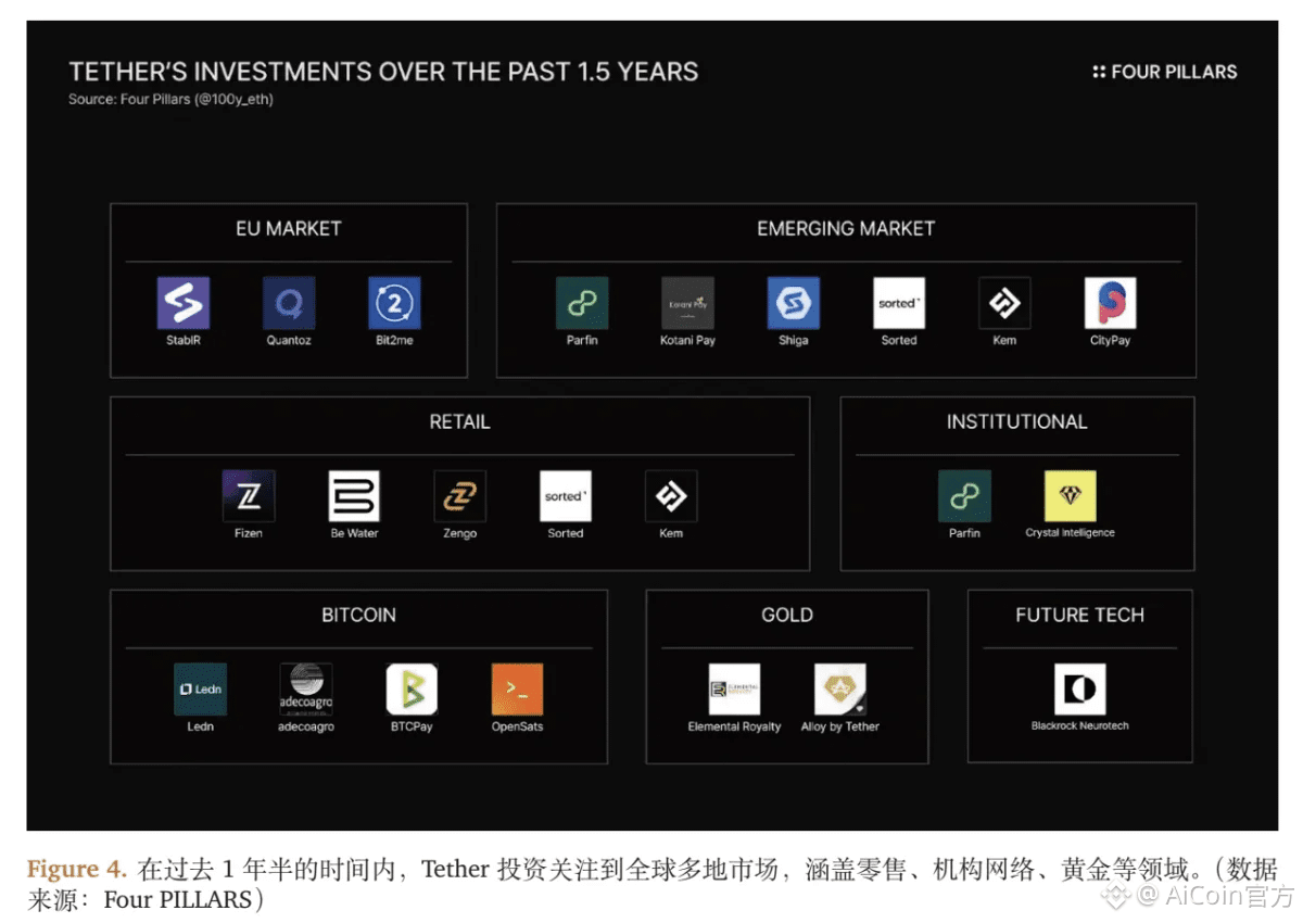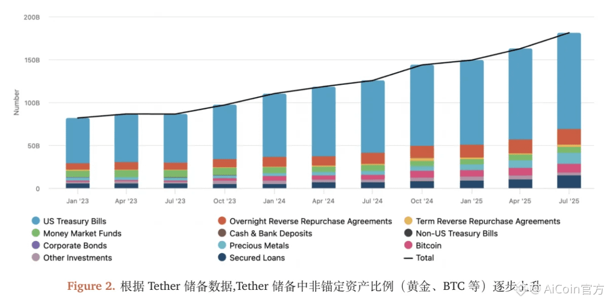 ● 其次是收益增厚考虑。随着预测中的黄金和比特币牛市在2025年成为现实,Tether从这些资产的价格上涨中获得了巨额账面收益。截至2025年第三季度,Tether的黄金储备已增值约48亿美元。