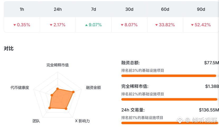 再看资金和估值结构,会更清楚。Plasma 的完全稀释市值和融资规模,已经处在基础设施项目的前 2%–3% 区间,但讨论度却明显低于同量级项目。这种错位,本质上说明一件事:它现在更像是被专业资金和长期参与者消化,而不是被情绪资金推着走。