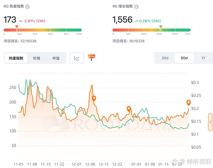 从 RD 数据来看,Plasma 的增长指数排名已经冲到全市场前列,项目增长维度位列 19338 个项目中的前 20 名左右,而 24h 交易量直接进入基础设施赛道的 前 1%。换句话说,市场并没有忘记它,只是没有用情绪去定价它。这种“价格弱、参与度强”的状态,往往出现在一个项目从叙事期,过渡到基础设施验证期的时候。