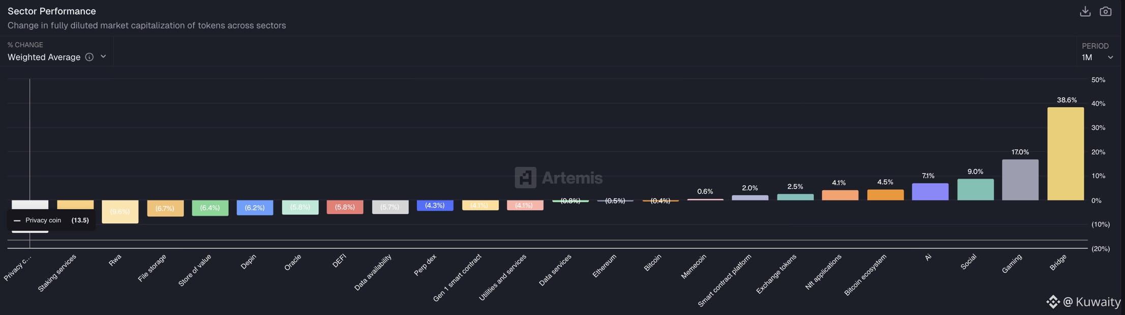 عملات الخصوصية هي الأسوأ أداءً في القطاع خلال الشهر الماضي، مما يشير إلى تحول في رأس المال القطاعي.