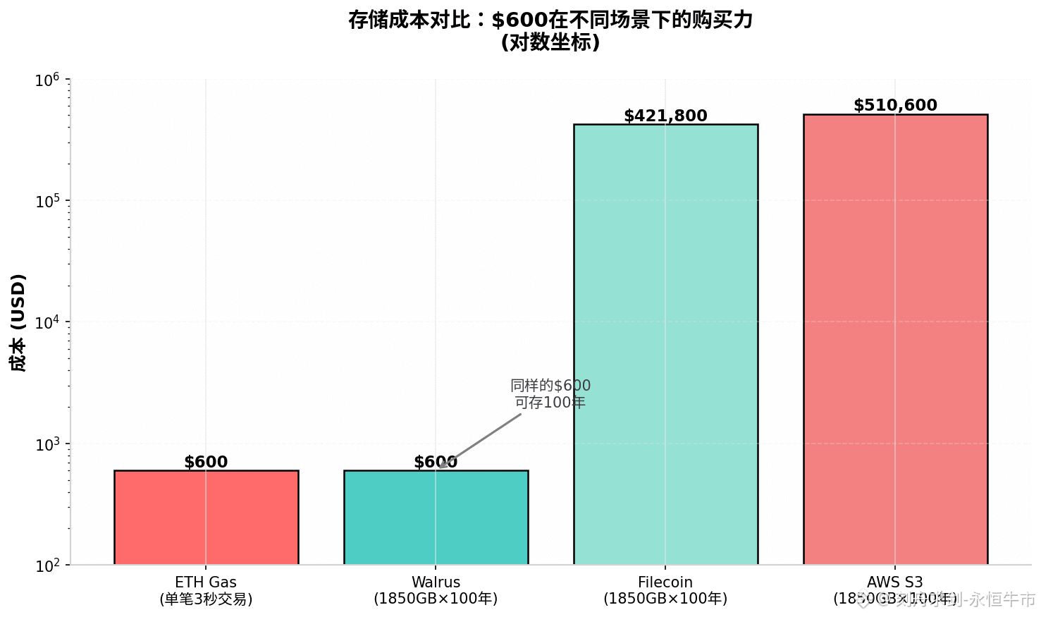 我盯着账单发呆,顺手打开计算器开始瞎算。如果这$600不是用来喂ETH的矿工,而是用来支付存储费用呢?我查了下Walrus的报价,$0.0027/GB/月。简单的除法:600除以0.0027,再除以12个月,得出的数字让我愣了一下——1850GB。我能存足足1850GB的数据,连续存100年都不用再充值。换句话说,我在链上烧掉的这单笔交互费,足够把一个中型视频工作室20年的原始素材,全部存到去中心化网络上,还能剩点余额给后人续费。