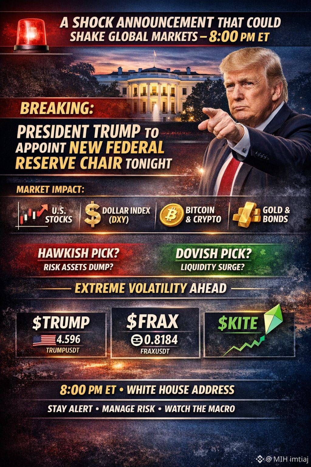 🇺🇸 U.S. President Donald Trump is set to deliver a major announcement from the White House tonight at 8:00 PM ET.